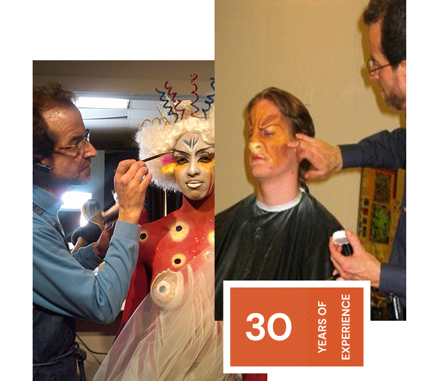 Roger specializes in Halloween make-overs and the transforming of personalities for diverse, special events. In addition, Roger has created special make up effects for disaster simulation used in the training of nurses, doctors and EMS personnel. His credits include triage exercises at the Baltimore/Washington International Airport, for the Secret Service, and for the UHUHS military training facility. Roger has also designed for numerous theatrical productions which entails researching and articulating the authenticity of period styles.