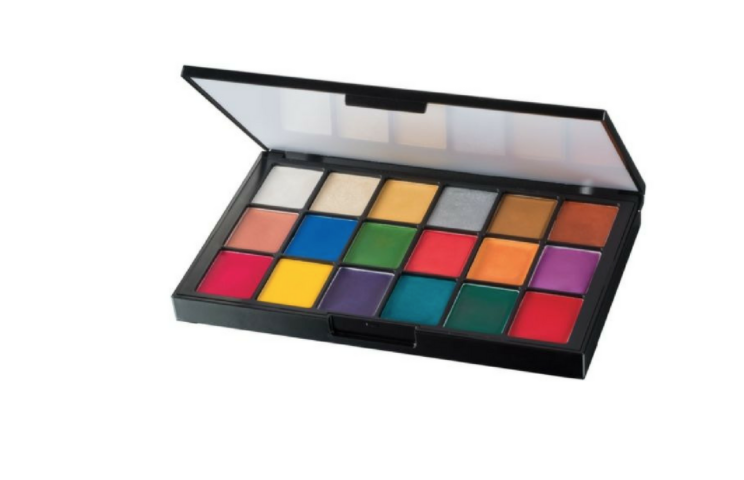 This palette includes 18 brilliant, metallic creme pigments that are simple to apply and easily blendable. Set with Ben Nye translucent powder for a long-lasting look.