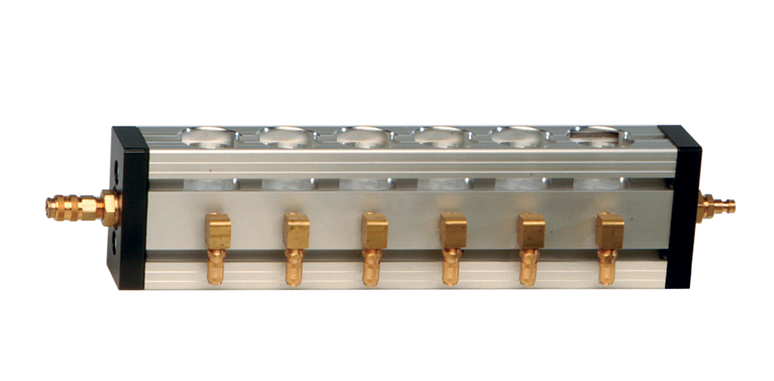 Designed by world famous airbrush artist Terry Hill, this manifold is an air pressure vessel as well as a receptacle for 6- 2 oz. bottles of F/X Aire Airbrush Makeup with brushes attached and ready for use.